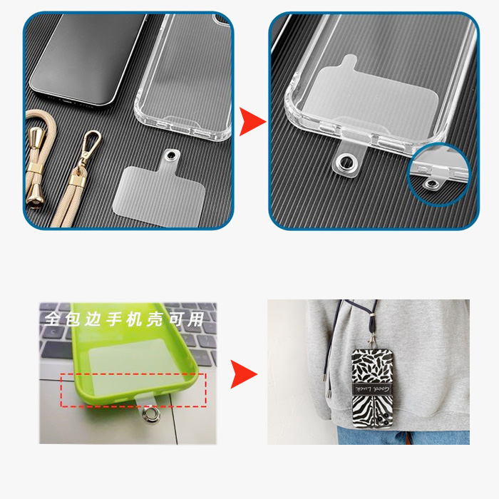 Model : PL001 * Universal for all kinds of phone cases * The length Adjustable * Crossbody / Neck hanging * anti-lost ,anti-drop , hand-free * unisex ,suitable for all ages * 1 set = 1pcs strap + 1pcs patch